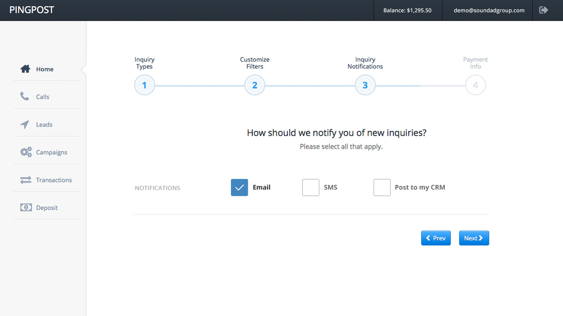 PingPost's unique self-service technology gives lead buyers the ability to purchase real-time leads based on their criteria, day-parts, and desired daily amount of leads. Its seller platform gives lead sellers the opportunity to earn top dollar for posting leads or driving calls into the network. The PingPost network provides access to several verticals including life insurance leads, auto insurance leads, home insurance leads, mortgage loan leads, and health insurance leads.
