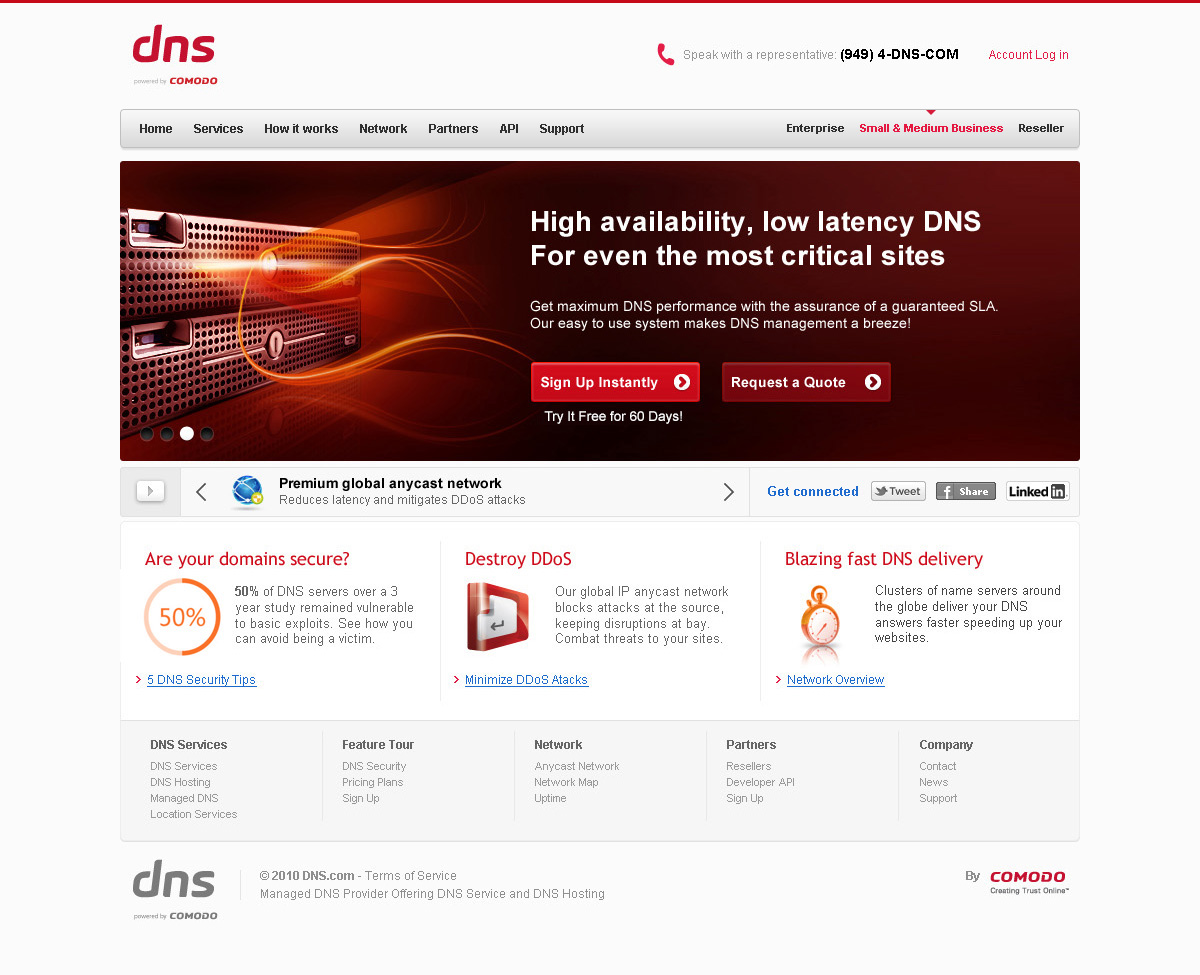Comodo Premium DNS helps everyday businesses and entrepreneurs connect with their audiences faster and more reliably by making DNS simple, usable, and fast. Comodo Secure DNS is a domain name resolution service that resolves DNS requests through a worldwide network of redundant DNS servers.