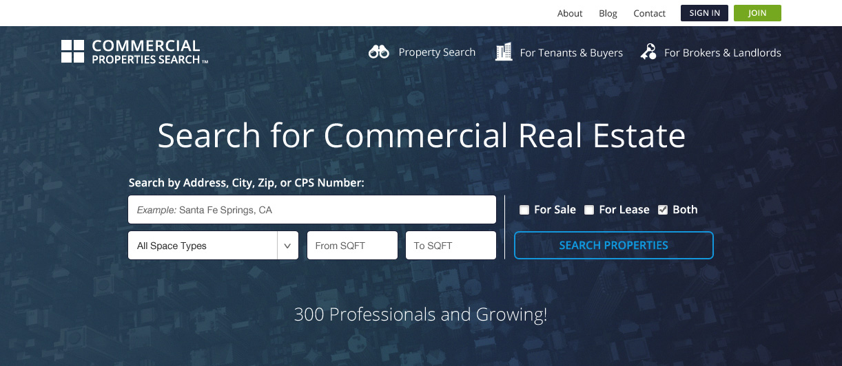 Commercial Property Search was a mobile app and website for tenants and buyers to find commercial space nationwide and connect with brokers, landlords and property managers. In addition, it powered the CRE Broker Network multiple listing service, which allowed real estate professionals to list and market properties, refer business among agents, and promote skills and services.